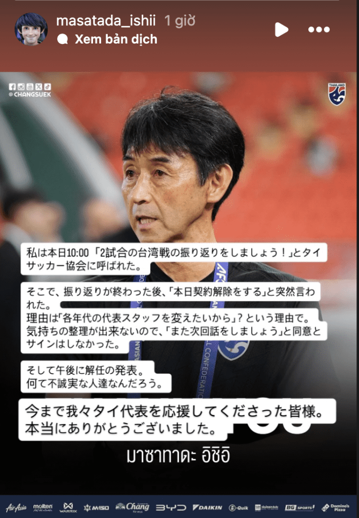 HLV Ishii tức giận vì Thái Lan sa thải đột ngột