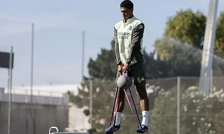 Vì sao Bellingham như bay lơ lửng khi tập tạ bình vôi?