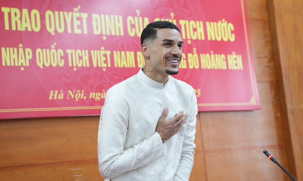 Hendrio mặc áo dài, hát Quốc ca khi nhận quốc tịch Việt Nam